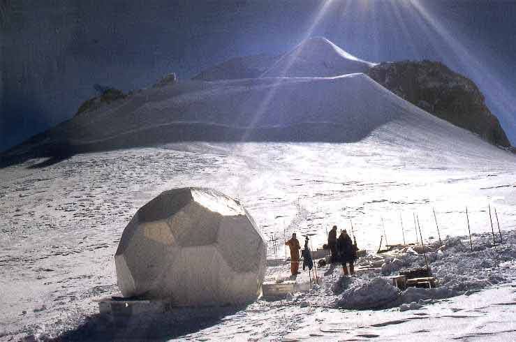 Picture of the drill site at Col du Dome in the Mt. Blanc range during a survey in 1999.