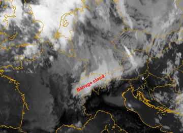 - The only indication of Barrage within the front is the enhancement of the frontal cloud band over the Alpine ridge as a result of forced