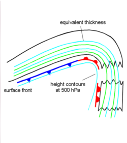 It is very similar to the (equivalent) thickness, therefore the cloudiness of the Detached Warm Front is also within