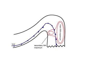 eastward moving frontal system, in the northern part of the cloud shield. A second, usually less pronounced, WA