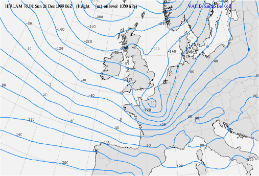 26 December 1999/06.00 UTC - HIRLAM/KNMI Analysis height 1000 hPa