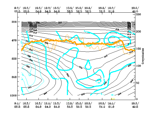 advance and cold advection in the whole frontal zone area. Only in a small low layer, there is some warm advection.
