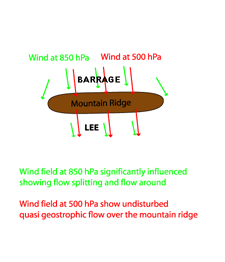 The example shows the clearly separated cloud feature of a multilayered Barrage Cloud north of the main Alpine ridge.