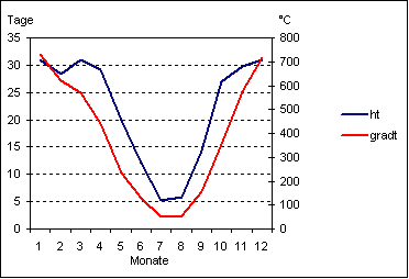 Zahl der Tage mit Windstärke ≥ 6 Beaufort |
