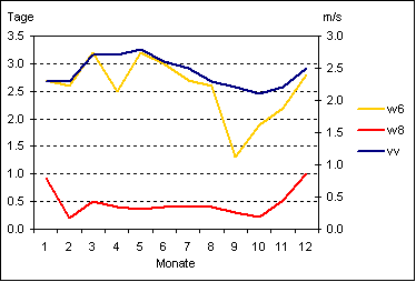 Zahl der Tage mit Windstärke ≥ 6 Beaufort |