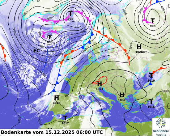 Das wetterbestimmende Hochdruckgebiet rückt etwas nach Osten, der Alpenraum gerät in eine föhnige Südströmung. Das ruhige und in der Höhe sehr milde Wetter ändert sich aber insgesamt nur wenig, eine Umstellung zu unbeständigeren und kälteren Bedingungen ergibt sich frühestens in der kommenden Woche.